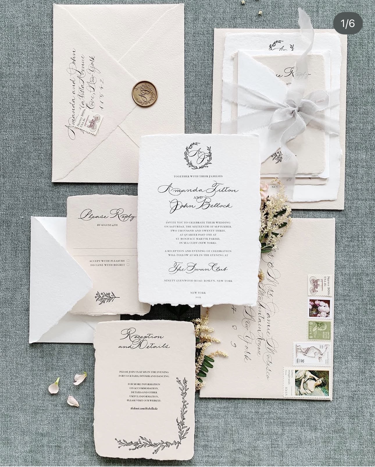 My semi-custom collection elevates your wedding stationery with timeless sophistication and a signature monogram that feels unmistakably yours. Each suite is thoughtfully designed with refined typography, delicate details, and elegant finishing touches; beautifully wrapped to create an unforgettable first impression. If you want your invitations to feel classic, polished, and effortlessly distinctive, this collection is made for you.